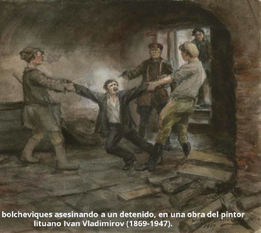 En otra orden Lenin fue aún más claro: "Hay que formar inmediatamente una troika dictatorial (usted mismo, Markin y otro) implantar el terror de masas, fusilar o deportar a los centenares de prostitutas que hacen beber a los soldados, a todos los antiguos oficiales, etc. No hay un minuto que perder."